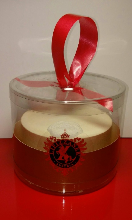 Schokolade-Torte mit weisser Schokoladeglasur.